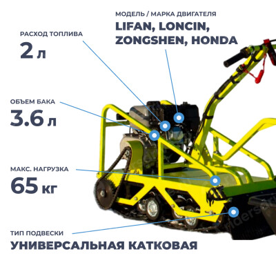 Широкая гусеница гарантирует устойчивость, тягу и безопасность, что особенно важно для длительных маршрутов.